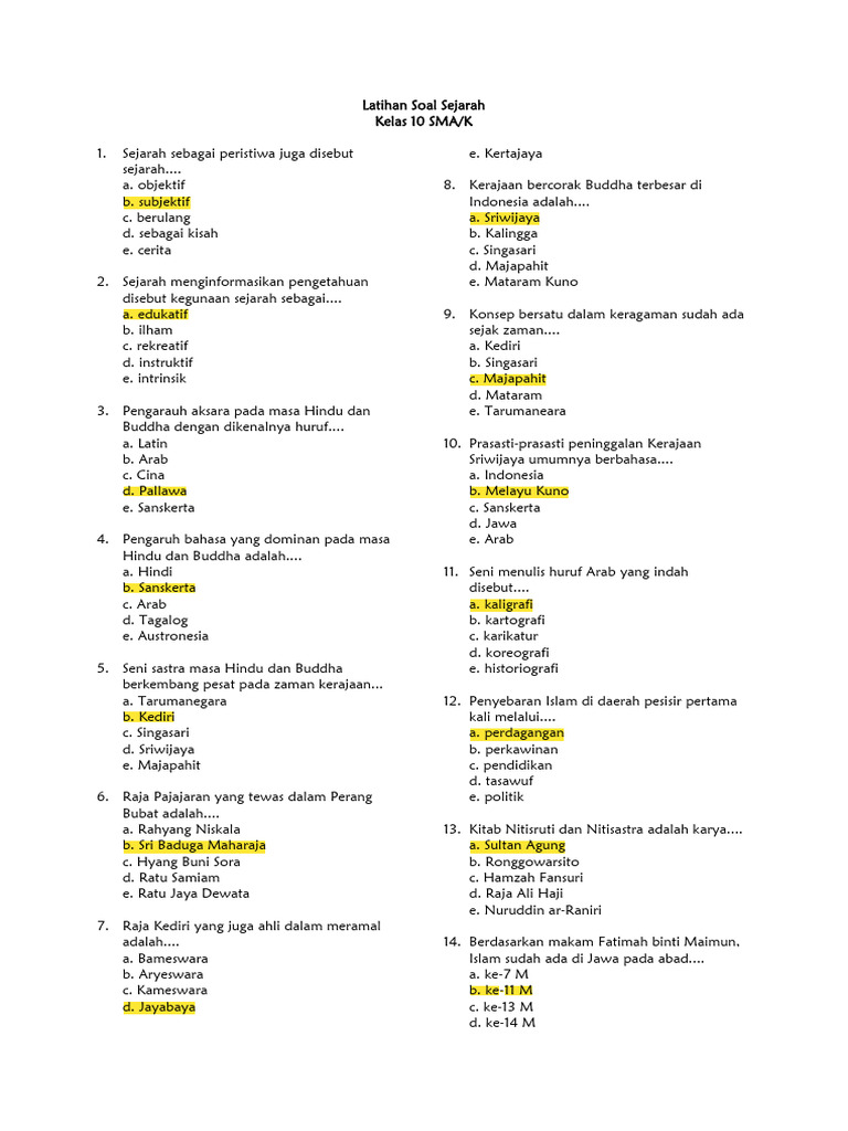 Latihan soal Sejarah Kelas 10, Latihan 4, biasanya menyajikan berbagai jenis pertanyaan yang dirancang untuk menguji pemahaman siswa dari berbagai sudut pandang. Berikut adalah beberapa tipe pertanyaan yang umum ditemui: